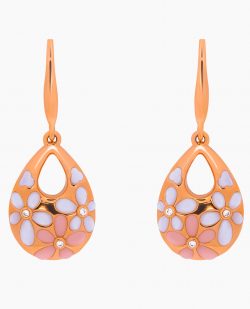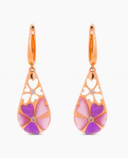 Mother of Pearl drop shape Earring with Amethyst & Diamonds 0.04carats in 18k Rose Gold 2.58grams.