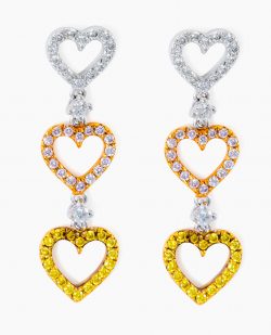 Heart shape Tricolor Earring with Diamonds 3.37carat in 18k Gold 8.03grams.