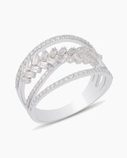 Exquisite Baugette and Round Diamond 0.83carats Ring set in 18k white Gold3.65grams.