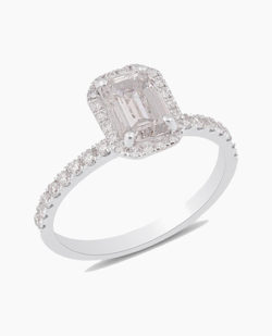 Diamond Ring with Emerald shape 1.2carats Color :I & Clarity: SI2 with side Diamonds of 0.38carats made in 18k white gold 2.54grams.