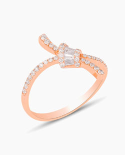 Fancy Designer Ring with Baugettes and Round Diamonds 0.45carats in 18k Rose Gold 2.32grams.
