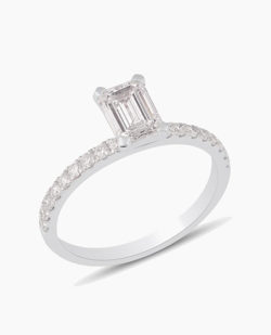Classic Emerald 1.01carats G SI1 Solitaire Ring with side Diamonds of 0.29carats in 18k White gold 2.21grams.