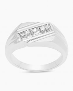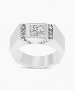 Hand crafted Men Ring with Princess and Brilliant cut diamonds of 0.88carats in 18k white gold 10grams.