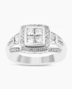 Diamond Ring with Princess cut of 0.70carats in pressure setting ring in 18k White gold 8.36grams