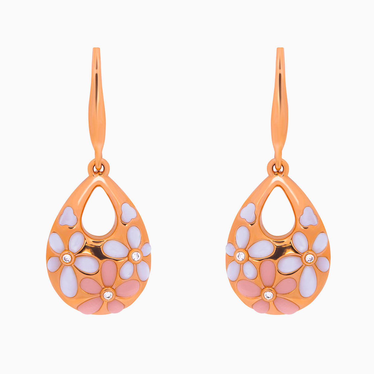 Mother of Pearl drop shape Earring with Amethyst & Diamonds 0.03carat in 18k Rose Gold 3.20grams.