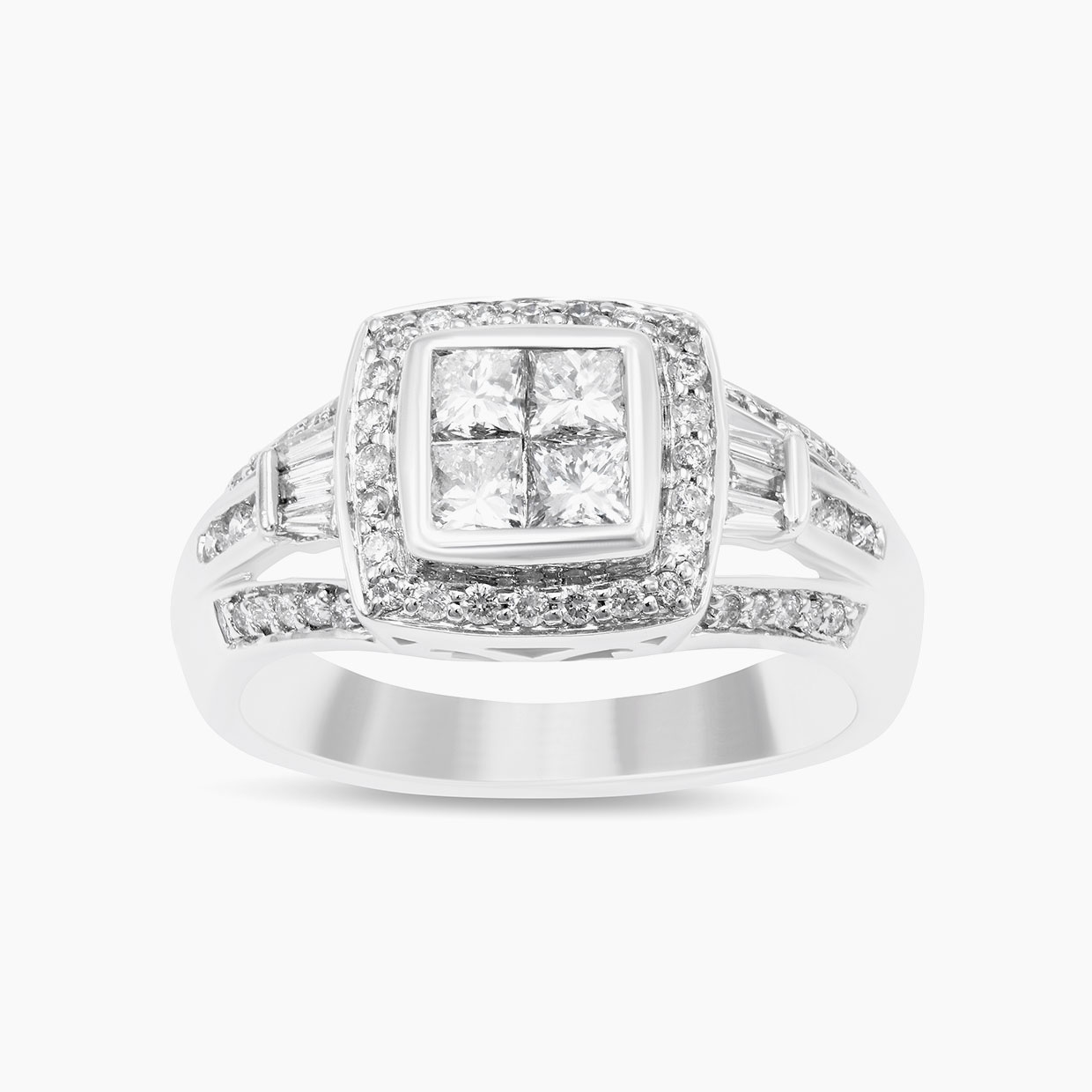 Diamond Ring with Princess cut 1.04carats in pressure setting with side diamonds in 18k White gold 6.52grams