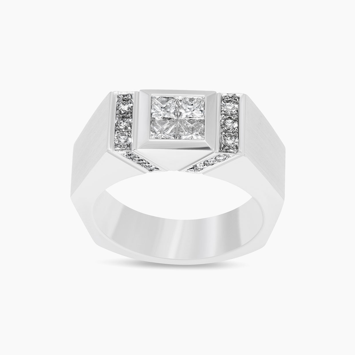 Hand crafted Men Ring with Princess and Brilliant cut diamonds of 0.88carats in 18k white gold 10grams.