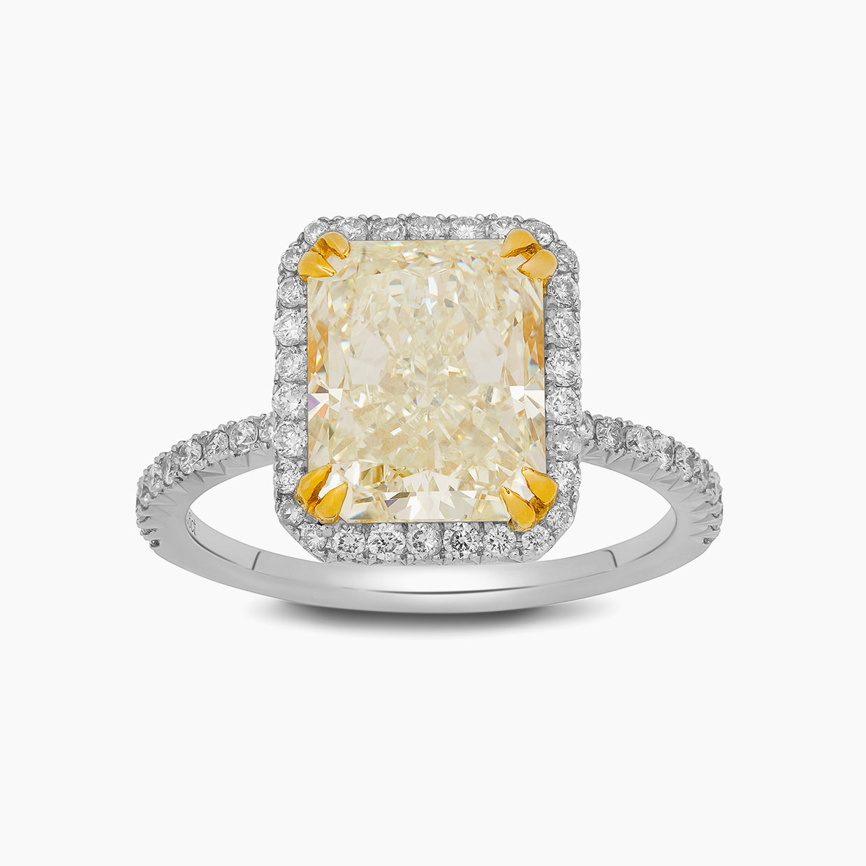 Wedding Ring with Radiant Cut Diamond halo setting in 18k White Gold