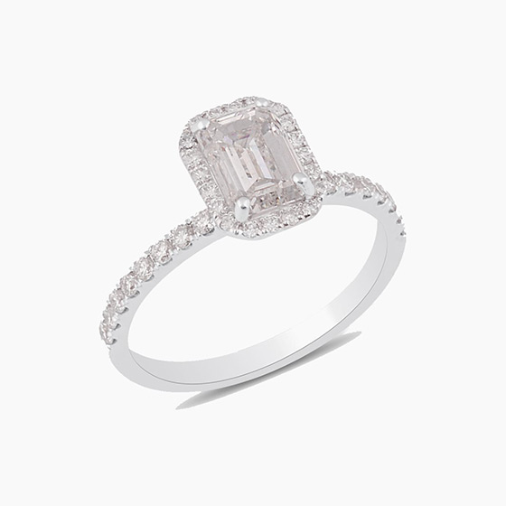 Diamond Ring with Emerald shape 1.2carats Color :I & Clarity: SI2 with side Diamonds of 0.38carats made in 18k white gold 2.54grams.