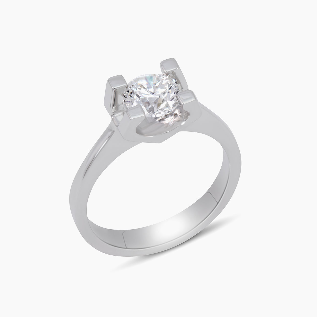 Diamond Ring with 1.00 carat set in Classic 4 prong setting in 18k white gold 3.14 grams.