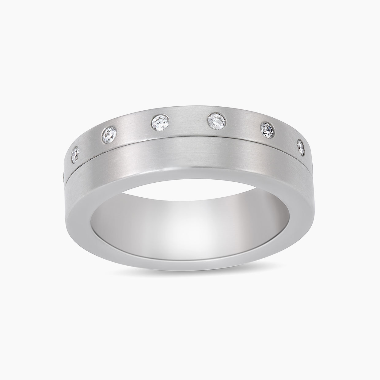 A revolving matt finish wedding band with flush Diamonds 0.14carat in Platinum 16.45 grams.
