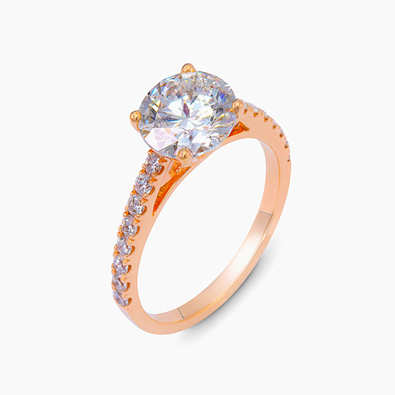 A Beautifully mounted solitaire Diamond Ring of 2.30carats in 18k Rose Gold 3.04grams with Side Diamonds of 0.33carats